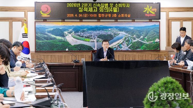 광장일보 주재영 기자 | 합천군은 24일 장재혁 합천군수 권한대행 주재로 ‘2026년 2분기 신속집행 대책보고회를 개최하고 지역 경제 활성화를 위한 재정 집행 가속화 방안을 논의했다.