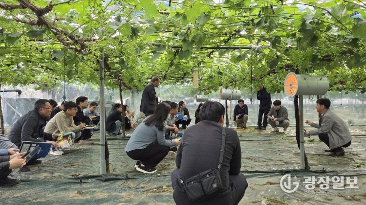 광장일보 주재영 기자 | 김천시는 4월 23일부터 24일까지 1박2일 간 김천시농업기술센터 및 관내 포도 재배농가 일원에서 농촌진흥청이 육성하는 ‘포도전문지도연구회 과제 교육’을 추진했다.