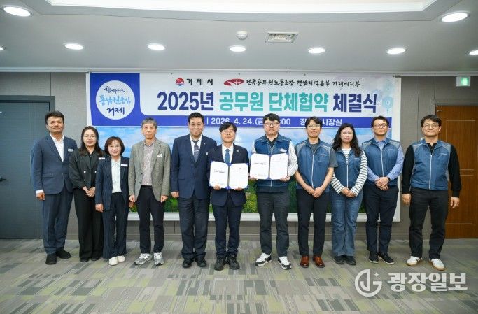 거제시와 전국공무원노동조합 거제시지부는 24일 거제시청 시장실에서 2025년 공무원 단체협약을 체결했다.