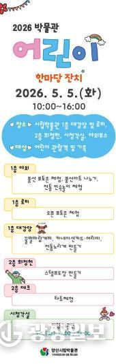 광장일보 주재영 기자 | 양산시립박물관은 5월 5일 어린이날을 맞이하여 박물관 일원에서 ‘2026년 어린이날 한마당 잔치’를 개최한다.