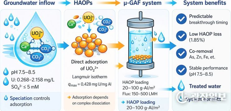 지하수 내 우라늄은 장기간 섭취 시 신장 손상을 유발할 수 있는 자연 발생 물질로 체계적인 관리가 필요하다. 이에 연구팀은 이번 성과를 바탕으로 공정 자동화가 가능한 지능형 수처리 시스템의 실용화와 현장 적용 확대에 나설 계획이다.