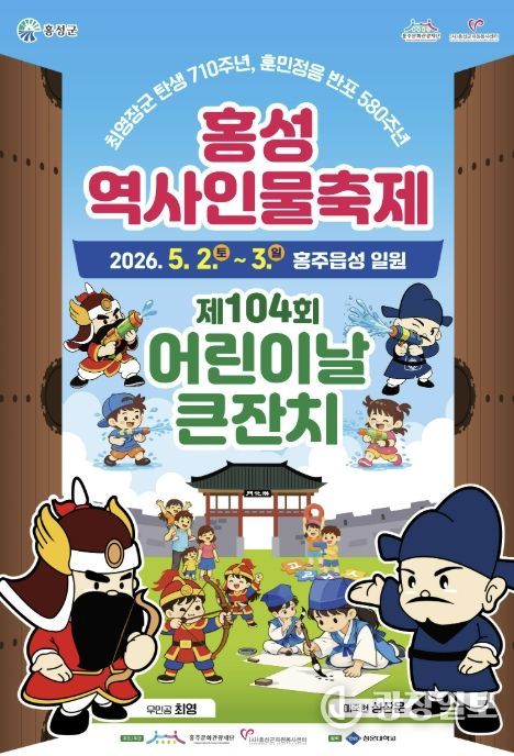 광장일보 나학천 기자 | 어린이날 연휴를 맞아 가족 단위 나들이객의 발길을 사로잡을 체험형 축제가 홍주읍성 일원에서 열린다. 물총놀이와 퍼레이드, 역사체험 등을 한자리에서 즐길 수 있는 ‘홍성역사인물축제X제104회 어린이날 큰잔치’가 5월 2일부터 3일까지 개최된다.