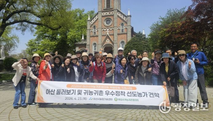 광장일보 주재영 기자 | 아산시귀농귀촌협의회는 「2026년 아산시귀농귀촌협의회 역량강화 지원사업」의 일환으로 지난 23일 “아산 둘러보기(염치· 선장·인주)”를 진행했다. 이번 활동은 귀농귀촌인의 안정적인 아산 정착과 공동체 역량 강화를 위해 마련됐다.