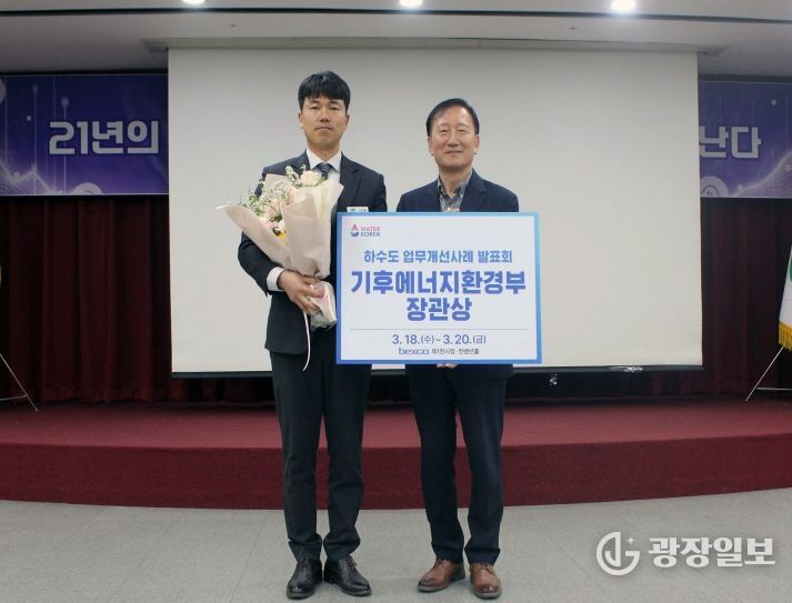 광장일보 주재영 기자 | 안동시시설관리공단은 한국상하수도협회가 주최하고 기후에너지환경부가 후원한 '2026 WATER KOREA 하수도 업무 개선 발표회'에서 최고 영예인 기후에너지환경부 장관상을 수상했다고 4월 27일 밝혔다.