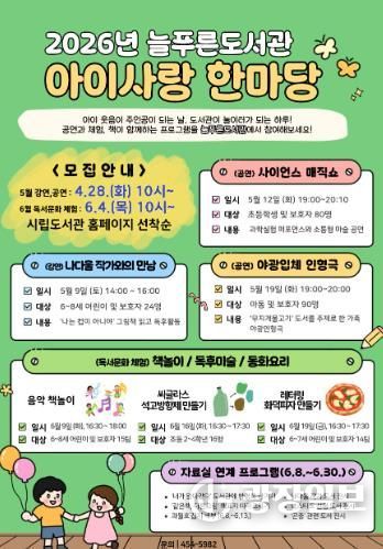 행사에 대한 자세한 사항은 도서관 누리집을 확인하거나 늘푸른도서관으로 문의하면 된다.