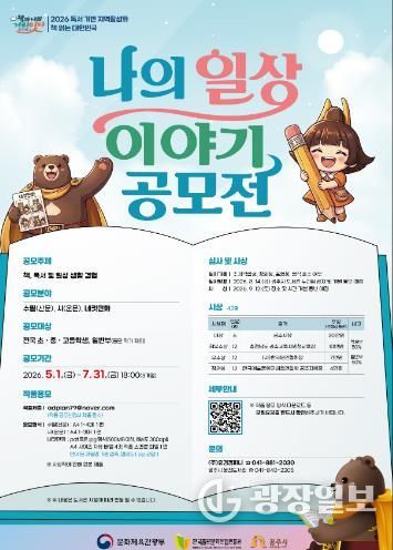 광장일보 나학천 기자 | 공주시는 독서와 일상 경험을 작품으로 표현하는 과정을 통해 비독자까지 아우르는 독서문화를 확산하기 위해 ‘나의 일상 이야기 공모전’을 오는 5월부터 7월까지 개최한다고 밝혔다.