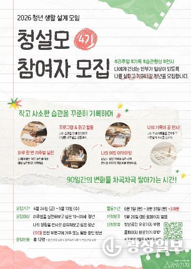 유유기지 부평 관계자는 “청설모는 청년들이 자신의 생활을 주도적으로 설계하고, 기록을 통해 변화를 체감할 수 있도록 돕는 프로그램”이라며 “이번 4기 역시 참여자들이 일상의 작은 실천을 통해 스스로의 변화를 발견하는 계기가 되길 바란다”고 말했다.