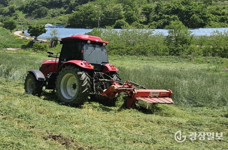 광장일보 주재영 기자 | 무주군이 농번기를 맞아 '농작업 대행 서비스' 제공에 주력하고 있다. 무주군에 따르면 트랙터, 자주형 베일러 등 12종 48대를 활용해 하우스 정지 등 농업 현장의 필수 작업을 대행하고 있다.