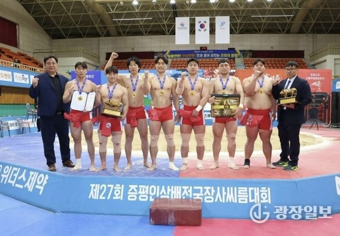 광장일보 주재영 기자 | 광주시청 씨름팀이 충북 증평스포츠센터에서 열린 ‘제27회 증평인삼배 전국장사씨름대회’에서 단체전 우승을 차지하고 개인전에서도 다수의 입상자를 배출했다.