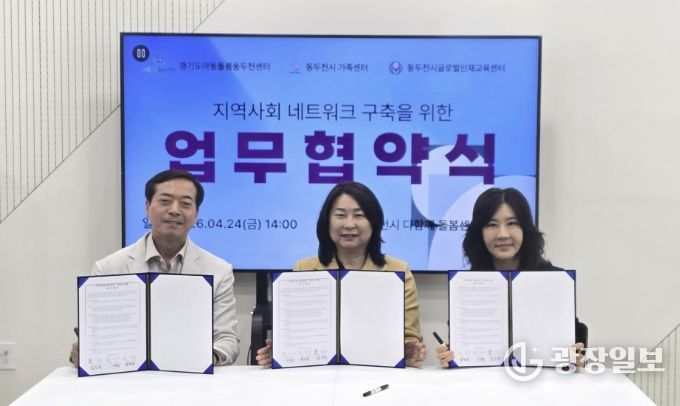 광장일보 주재영 기자 | 동두천시글로벌인재교육센터는 지난 24일 동두천시가족센터, 동두천시다함께돌봄센터1호점(경기도아동돌봄동두천센터)과 함께 지역사회 네트워크 구축을 위한 3자 간 업무협약(MOU)을 체결했다고 밝혔다.