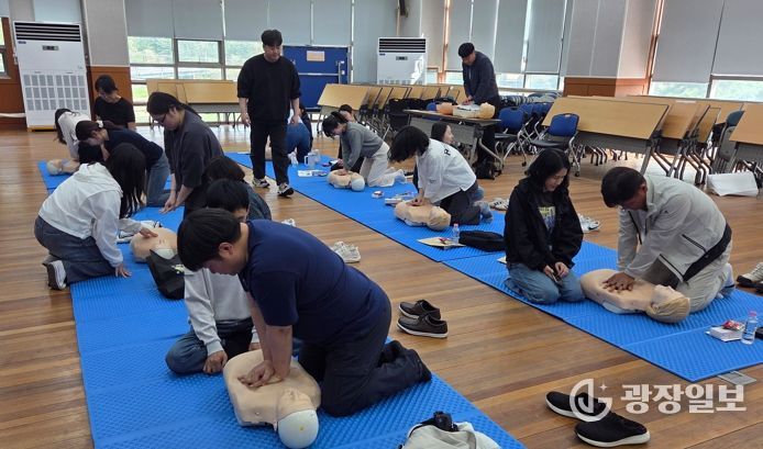 강의를 맡은 전북대학교병원 응급의학과 김소은 교수는 심정지 발생 후 뇌 손상을 최소화할 수 있는 ‘4분의 골든타임’의 중요성을 강조하고, 응급처치 기본 순서인 ‘CAB(가슴압박·기도확보·호흡)’를 중심으로 실습과 함께 체계적인 교육을 진행했다.