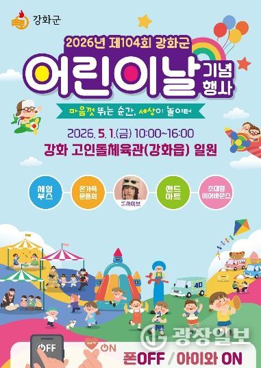 광장일보 주재영 기자 | 강화군은 제104회 어린이날을 맞아 오는 5월 1일 오전 10시부터 강화읍 고인돌체육관에서 어린이날 기념행사를 개최한다.