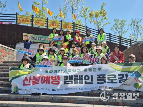 광장일보 주재영 기자 | 제21대 밀양여자고등학교 총동문회(회장 김상숙)는 지난 25일 용두산 생태공원 잔도길에서 달팽이전망대에 이르는 구간에서 ‘산불 예방 캠페인’을 펼쳤다.