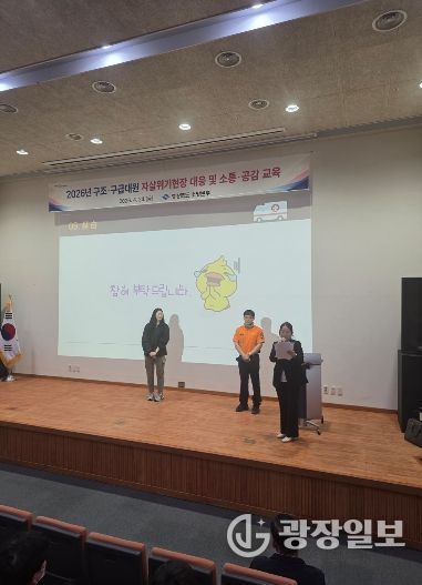 광장일보 주재영 기자 | 경상북도 소방본부는 24일 의성 조문국박물관 강당에서 도내 구조・구급대원 100여 명을 대상으로 전문강사를 초빙해 자살시도자 현장대응 및 직장 내 소통·공감 교육을 실시했다.