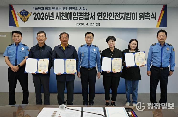 광장일보 주재영 기자 | 사천해양경찰서는 27일 연안사고 예방을 위해 선발된 ‘26년도 연안안전지킴이” 4명을 위촉했다고 밝혔다.