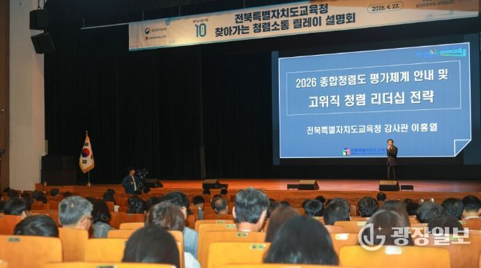 광장일보 주재영 기자 | 전북특별자치도교육청은 27일 전주학생교육문화관에서 ‘2026년 행동강령책임관 등 청렴교육’을 실시했다.