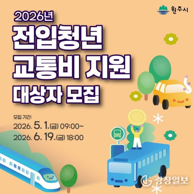 광장일보 이현나 기자 | 원주시는 청년층의 전입과 안정적인 정착을 지원하기 위해 2023년 이후 원주시로 전입하고, 관외 직장으로 출퇴근하는 18∼39세 청년들을 대상으로 최대 120만 원의 교통비를 지원한다.