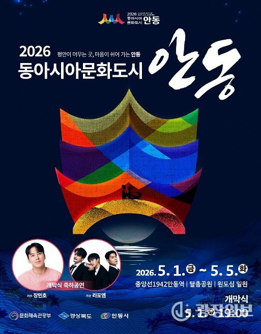 광장일보 주재영 기자 | 안동시는 오는 5월 1일부터 5일까지 탈춤공원과 중앙선1942안동역 일원에서 ‘2026 동아시아문화도시 안동’ 행사를 개최한다.