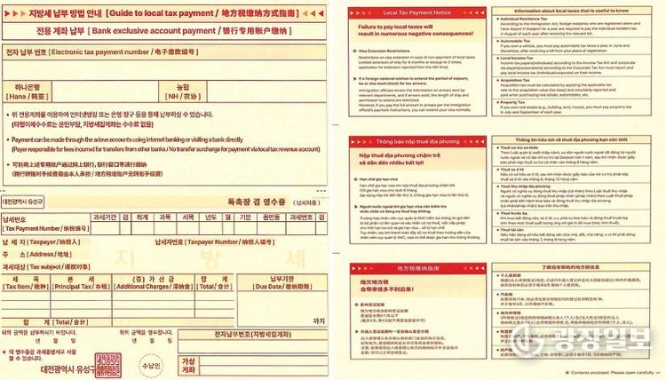 또한, 고지서 후면에는 지방세 관련 일반 사항을 베트남어로 추가 안내해 다양한 국적의 외국인 납세자의 이해도를 높였다.
