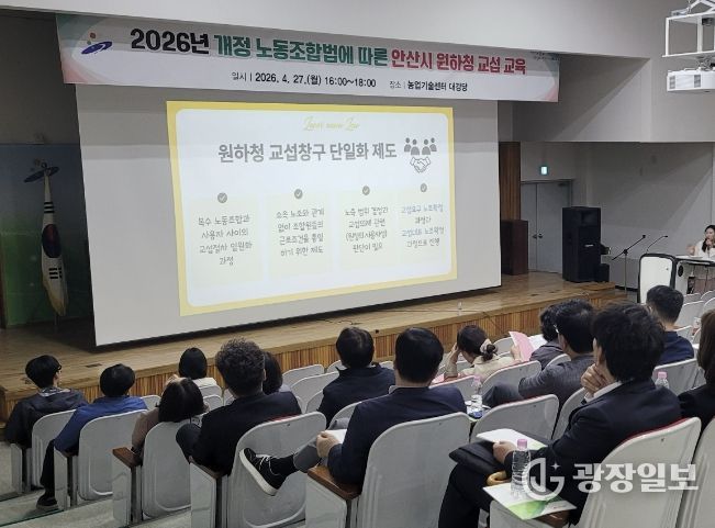 광장일보 주재영 기자 | 안산시는 지난 27일 농업기술센터 대강당에서 5급 이상 간부공무원을 대상으로 원·하청 교섭 교육을 진행했다고 28일 밝혔다.