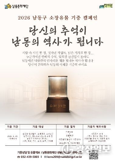 남동문화재단은 소래역사관을 중심으로 ‘2026 남동구 소장유물 기증 캠페인’을 오는 4월 20일부터 연중 상시 운영한다고 28일 밝혔다.