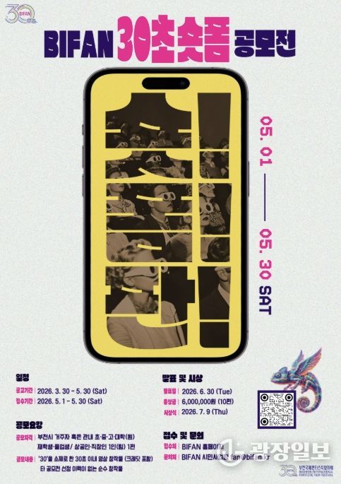 광장일보 주재영 기자 | 부천시는 부천국제판타스틱영화제(BIFAN)와 함께 ‘숏! 폼! 판! BIFAN 30초 숏폼 공모전’을 열고, 제30회를 맞은 영화제를 기념해 시민 참여형 프로그램을 운영한다.