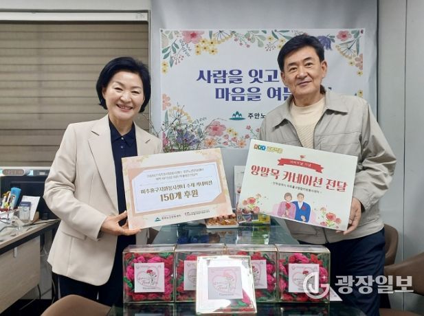참가자들은 150여 개의 양말목 카네이션을 직접 만들었으며, 지난 27일 주안노인문화센터 어르신들께 전달하여 따뜻한 나눔의 의미를 더했다.