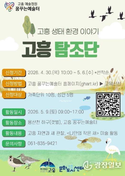 광장일보 주재영 기자 | 고흥군과 고흥군문화도시센터는 오는 5월 9일 세계 철새의 날을 맞아 ‘제2회 고흥 탐조단’ 프로그램 참가자를 모집한다고 밝혔다.