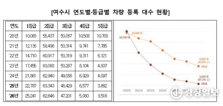 광장일보 주재영 기자 | 여수시는 ‘2026년도 노후차 조기폐차 지원사업’ 대상자 선정을 완료하고 배출가스 4·5등급 차량 감축에 속도를 내고 있다고 밝혔다.