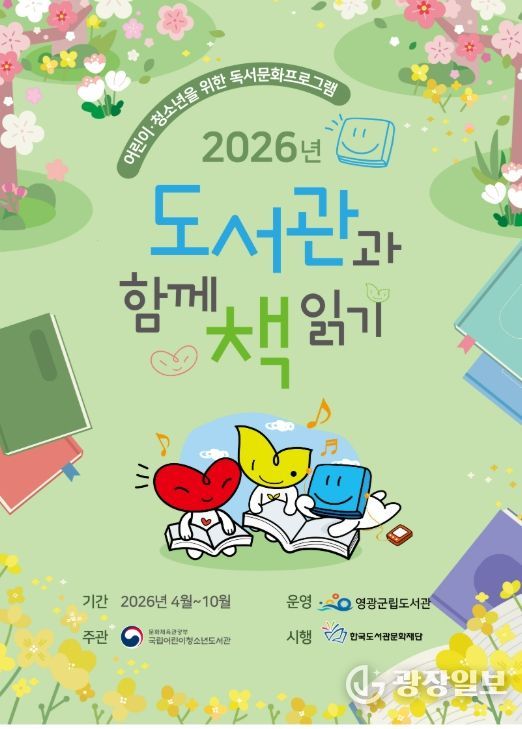 광장일보 주재영 기자 | 영광군은 국립어린이청소년도서관이 주관하는 '2026년 도서관과 함께 책 읽기' 공모사업에 2년 연속 선정됐다고 밝혔다.