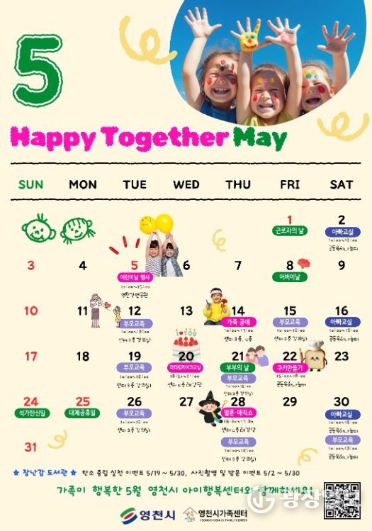 광장일보 주재영 기자 | 영천시는 5월 가정의 달을 맞아, 아이와 가족이 함께 즐길 수 있는 ‘아이행복 통합 페스타’를 운영한다고 28일 밝혔다.