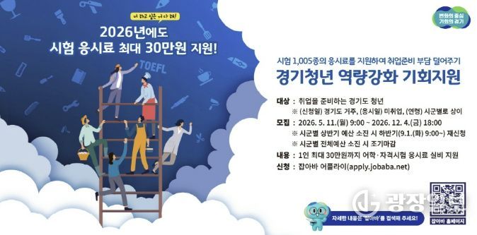 광장일보 주재영 기자 | 고양특례시는 미취업 청년의 취업준비 부담을 완화하기 위한 ‘경기청년 역량강화 기회지원사업’이 오는 5월 11일 접수를 시작한다고 밝히며, 고양시 청년들이 적극 참여할 것을 당부했다.