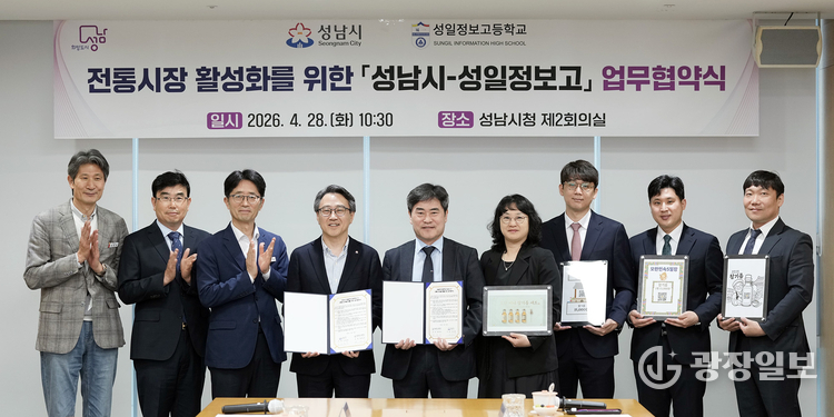 이날 성남시는 시청 제2회의실에서 성일정보고와 전통시장 활성화를 위한 업무협약을 체결했다. 이번 협약은 전통시장 이용객의 고령화와 디지털 환경 전환 지연 등으로 젊은 고객층 유입이 어려운 상황을 개선하기 위해 마련됐다.