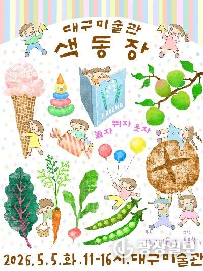 광장일보 주재영 기자 | 대구미술관은 가정의 달을 맞아 5월 5일 온 가족이 예술 안에서 즐겁게 소통할 수 있는 특별 이벤트 ‘놀자, 뛰자, 웃자-색동장’을 개최한다. 이날 미술관은 무료로 개방되며, 전시 관람부터 체험, 장터까지 다채로운 프로그램이 펼쳐진다.