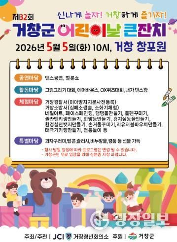 이번 행사는 거창청년회의소가 주관하며, 오전 10시부터 오후 3시까지 다채롭고 풍성한 프로그램으로 어린이와 가족 모두에게 특별한 하루를 선사할 예정이다.