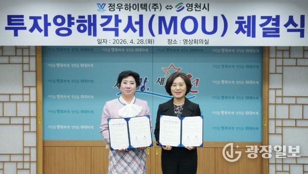 광장일보 주재영 기자 | 영천시는 28일 시청 영상회의실에서 자동차 부품 전문기업인 정우하이텍㈜과 150억원 규모의 투자협약(MOU)을 체결했다.