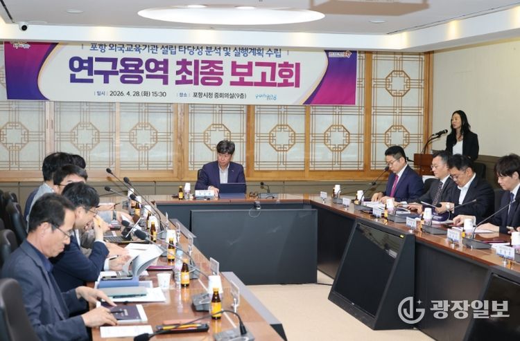광장일보 주재영 기자 | 포항시는 28일 경상북도, 대구경북경제자유구역청이 참석한 가운데 ‘외국교육기관 설립 타당성 조사 및 실행계획 수립 연구용역’ 최종보고회를 개최했다.