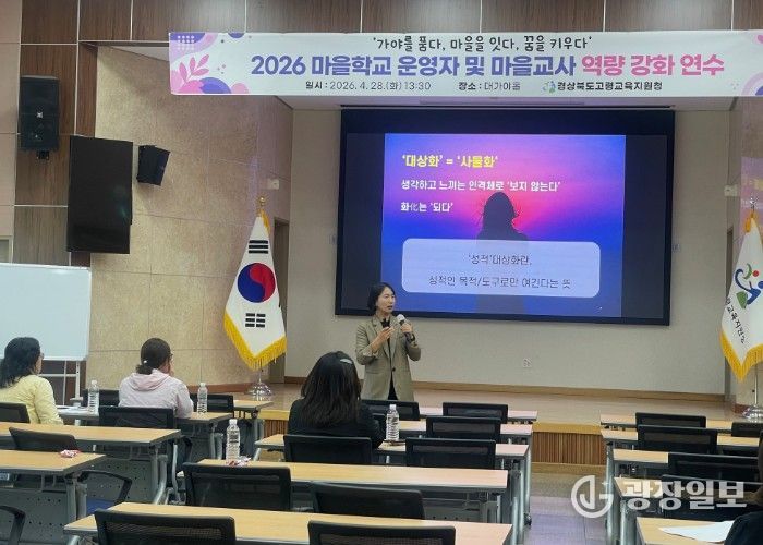 광장일보 주재영 기자 | 경상북도고령교육지원청은 4월 28일 오후 1시 30분, 고령교육지원청 대가야홀(3F)에서 관내 마을학교 운영자 및 마을교사를 대상으로 ‘2026 고령미래교육지구 마을학교 운영자 및 마을교사 역량강화 연수’를 개최했다.