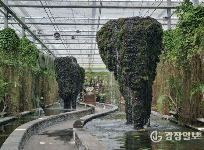 광장일보 주재영 기자 | 제28회 함평나비대축제가 열리는 함평 엑스포공원 내 수생식물관에 조성된 ‘정글경관’이 신비로운 연출로 관람객들의 이목을 끌고 있다.