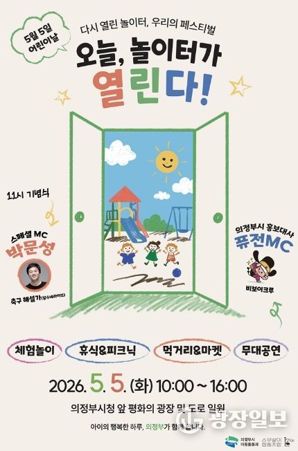 광장일보 주재영 기자 | 의정부시는 제104회 어린이날을 맞아 5월 5일 오전 10시부터 오후 4시까지 의정부시청 앞 평화의 광장 및 도로 일원에서 ‘2026년 의정부시 어린이날 기념행사’를 개최한다.