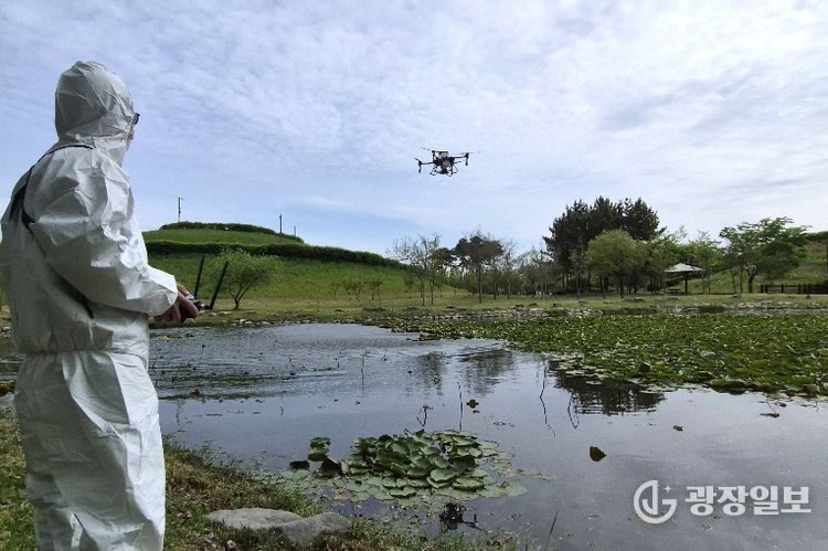 드론 방역 대상 지역은 빛가람호수공원과 대호수변공원 등 2개소로 특히 넓은 수면 지역과 인력 접근이 어려운 구간을 중심으로 집중 방역이 이루어질 예정이다.