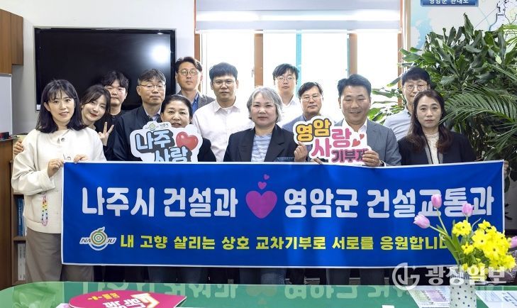 광장일보 주재영 기자 | 전남 나주시 건설과와 영암군 건설교통과는 고향사랑기부제 활성화와 지역 간 상생협력을 위해 지난 28일 ‘2026 고향사랑기부제 상호 교차 기부’ 행사를 가졌다고 29일 밝혔다.