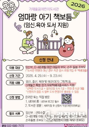 광장일보 주재영 기자 | 인천광역시교육청서구도서관은 29일부터 임산부와 초보 양육자를 대상으로 ‘엄마랑 아기 책보듬’서비스를 시작한다.