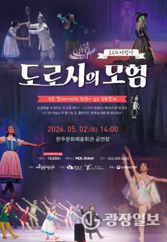 전북 발레시어터의 해설이 있는 동화 발레 '도로시의 모험'이 오는 5월2일 토요일 오후 2시, 완주문화예술회관에서 열린다.