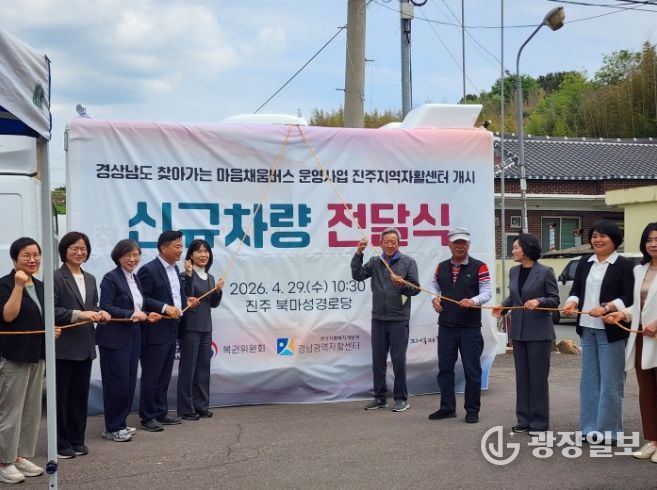 광장일보 주재영 기자 | 경상남도는 29일 진주시 사봉면 북마성경로당에서 ‘찾아가는 마음채움버스(빨래방) 차량’ 전달식을 개최하고, 5월부터 이동빨래 서비스 확대 운영에 들어간다고 밝혔다.