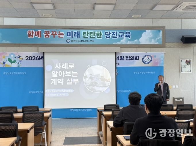광장일보 나학천 기자 | 당진교육지원청은 29일 계약업무 학습공동체 회원과 관내 계약업무 담당자를 대상으로 ‘2026년 청렴 계약업무 연수’를 진행했다.