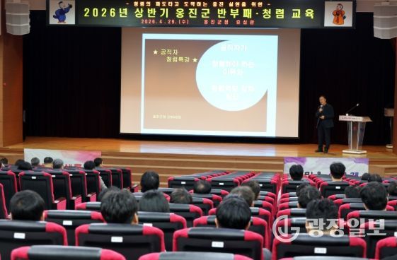광장일보 주재영 기자 | 옹진군은 지난 29일 군청 효심관에서 전 직원을 대상으로 공직윤리 의식 고취를 위한 ‘2026년 상반기 공직자 반부패·청렴 교육’을 실시했다고 밝혔다.