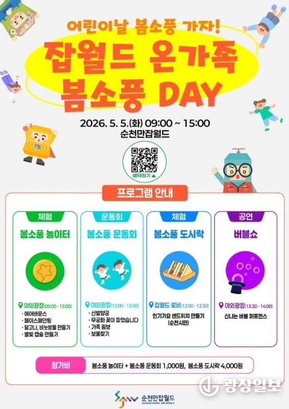 광장일보 주재영 기자 | 순천시는 오는 어린이날을 맞아 순천만잡월드에서 ‘잡월드 온가족 봄소풍 DAY’이벤트를 개최한다고 밝혔다.