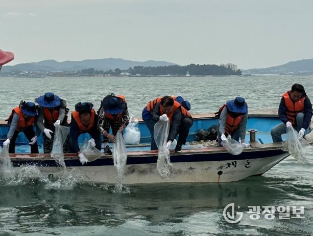 광장일보 주재영 기자 | 전라남도해양수산과학원은 수산자원 회복과 어업인 소득 증대를 위해 경제적 가치가 높은 어린 대하 100만 마리를 29일 함평 석창해역에 방류했다고 밝혔다.