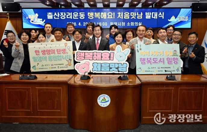 광장일보 주재영 기자 | 경남 밀양시는 29일 시청 소회의실에서 밀양시여성단체협의회, 농협은행 밀양시지부, 밀양축산농협, 관내 소상공인 등 관계자 22명이 참석한 가운데 출산장려운동 ‘행복해요! 처음맛남’ 발대식을 개최했다.